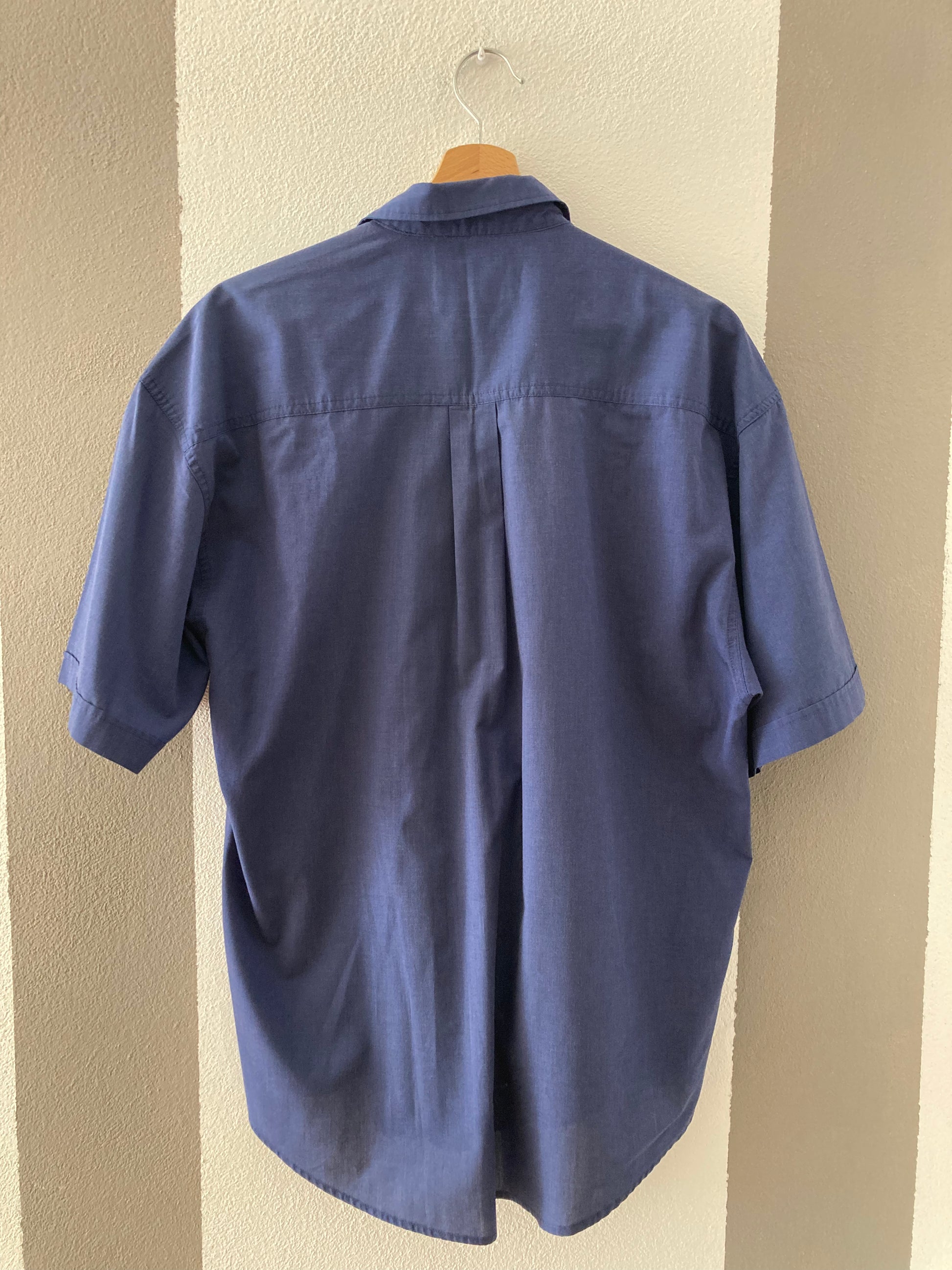 Camicia vintage custom con patch a righe e pattern pop art , size XL.