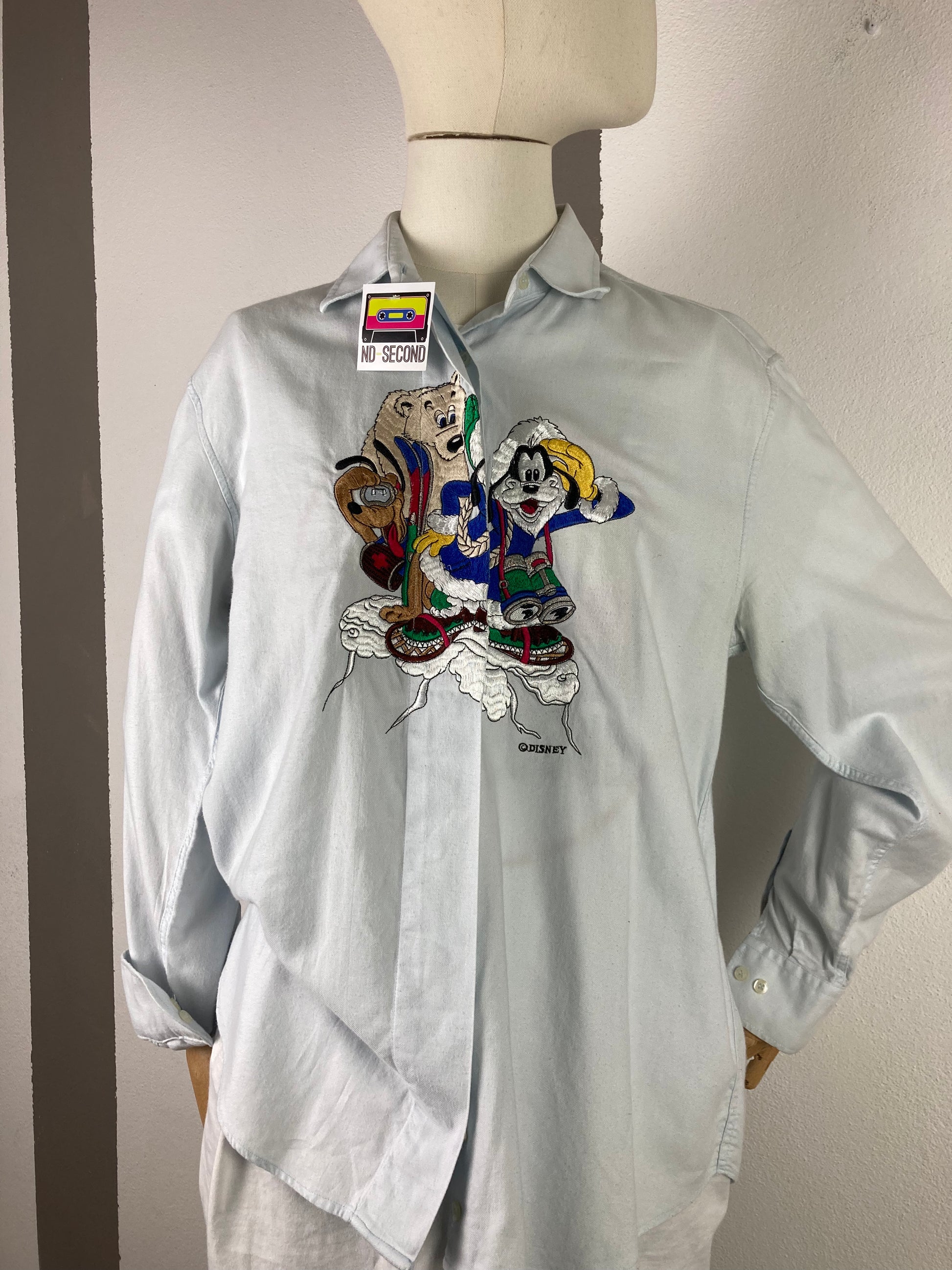 Camicia vintage ‘90 Emmanuel Schvili, bellissimo il ricamo sul davanti con Pippo e Pluto , riporta una tg 44.