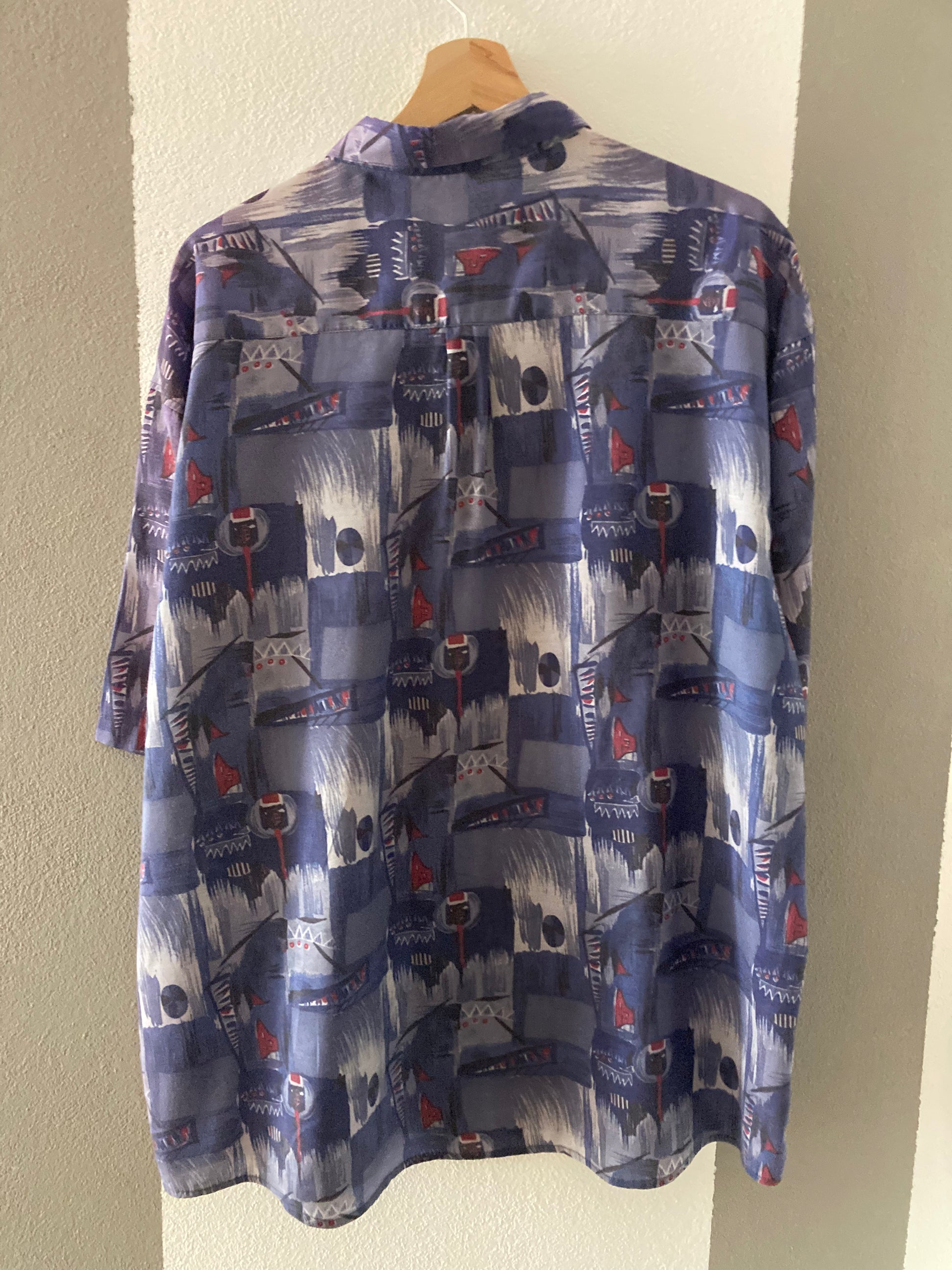 Camicia vintage a fantasia astratta in multicolor , veste una XL.