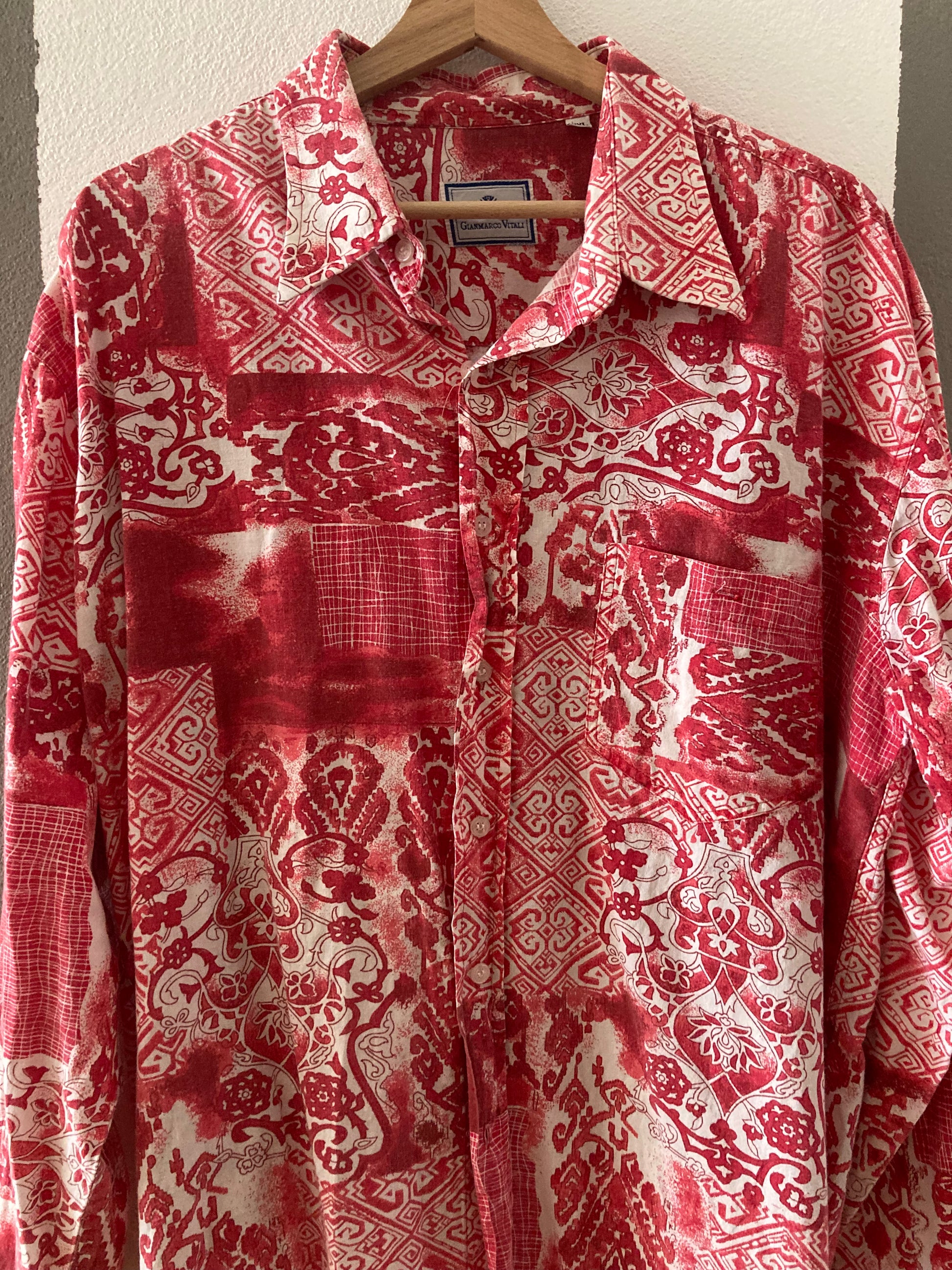 CAMICIA VINTAGE A FANTASIA BIANCO /ROSSO
