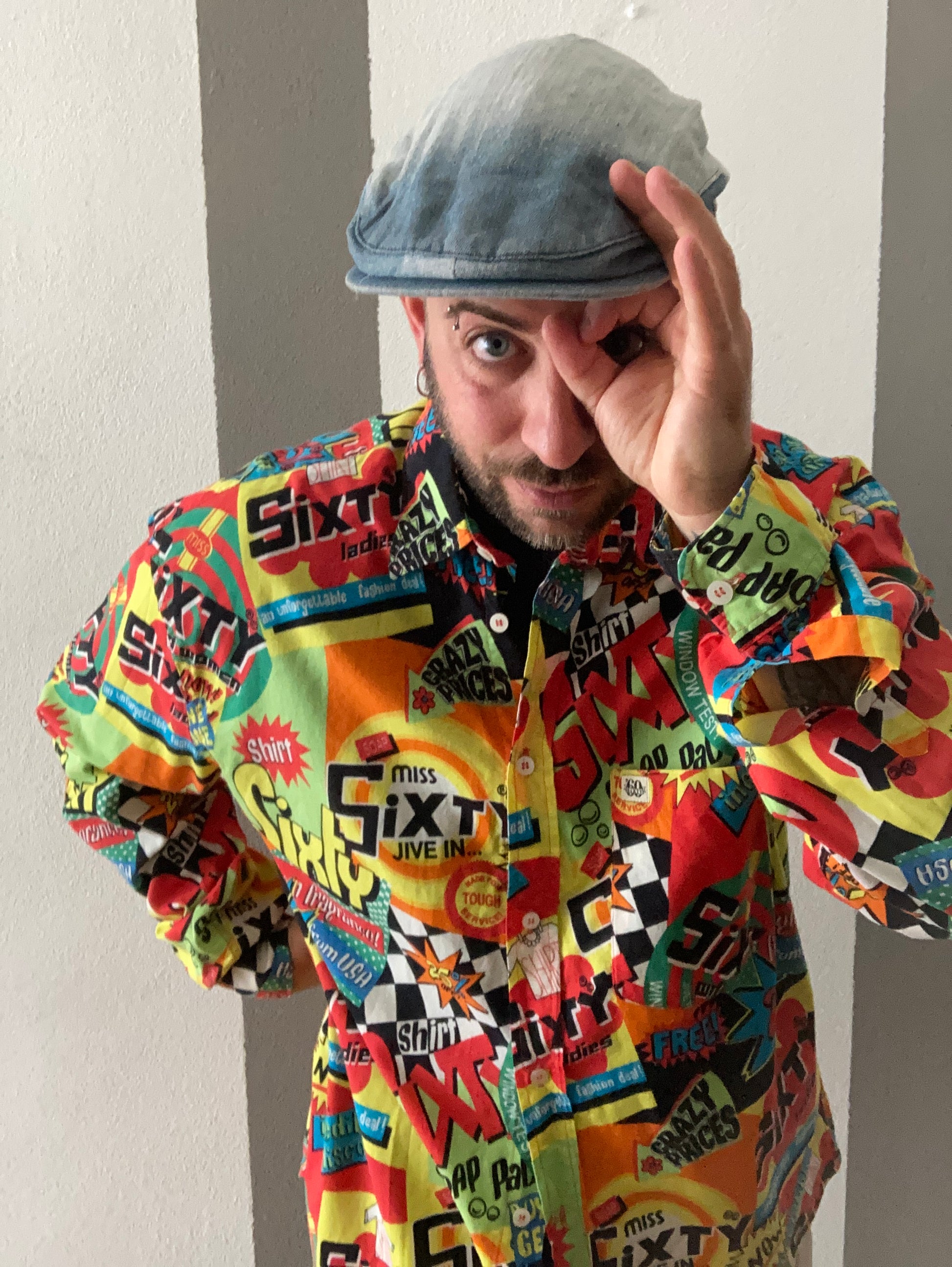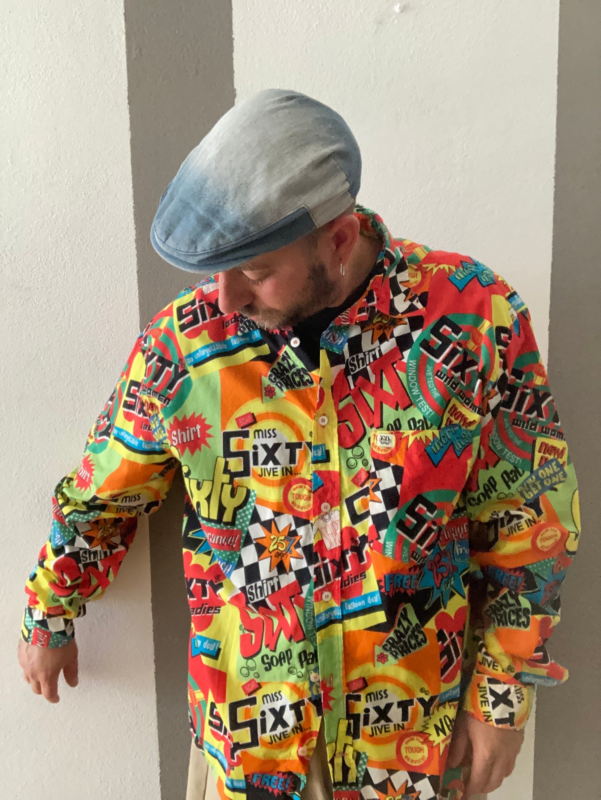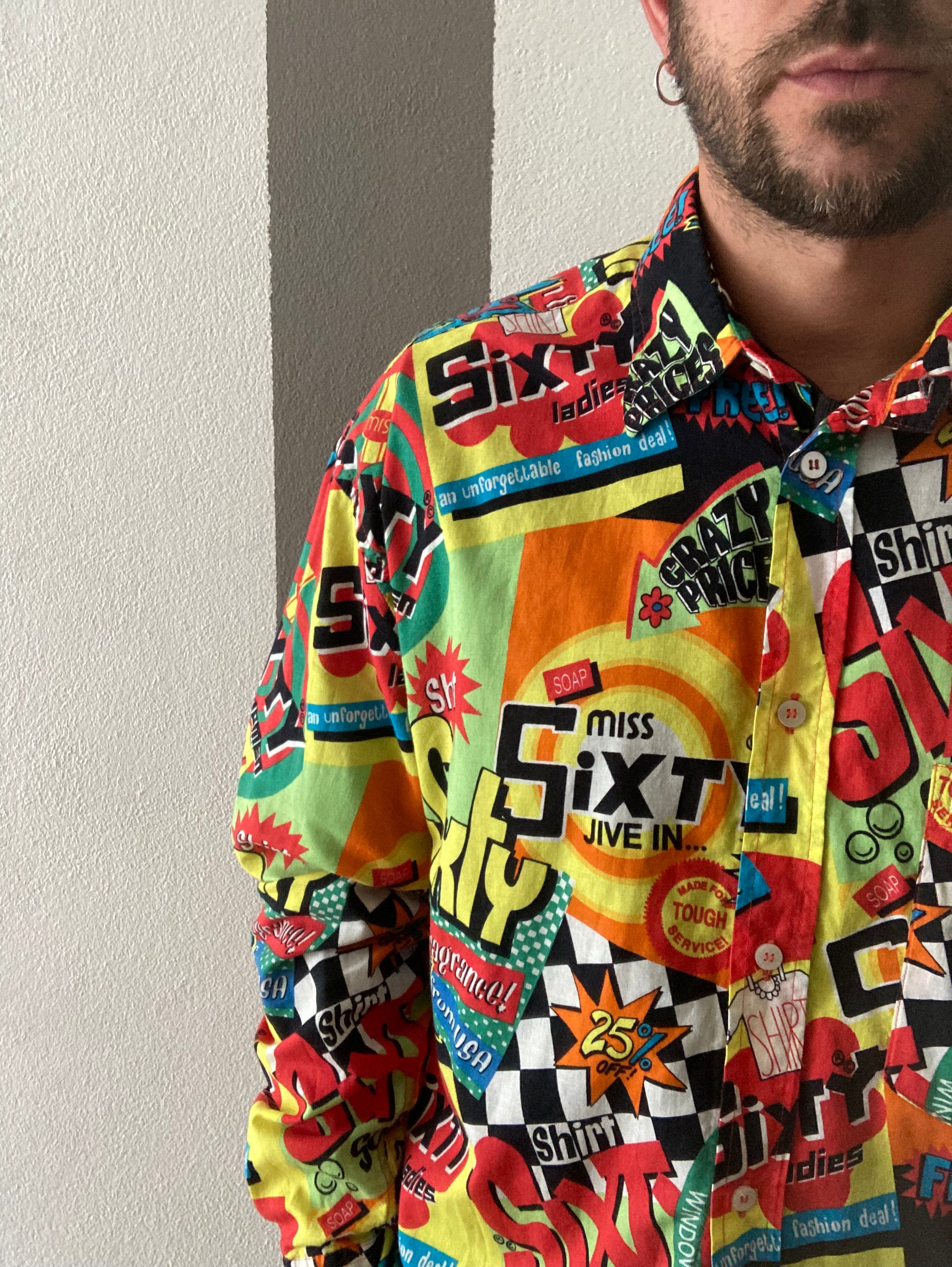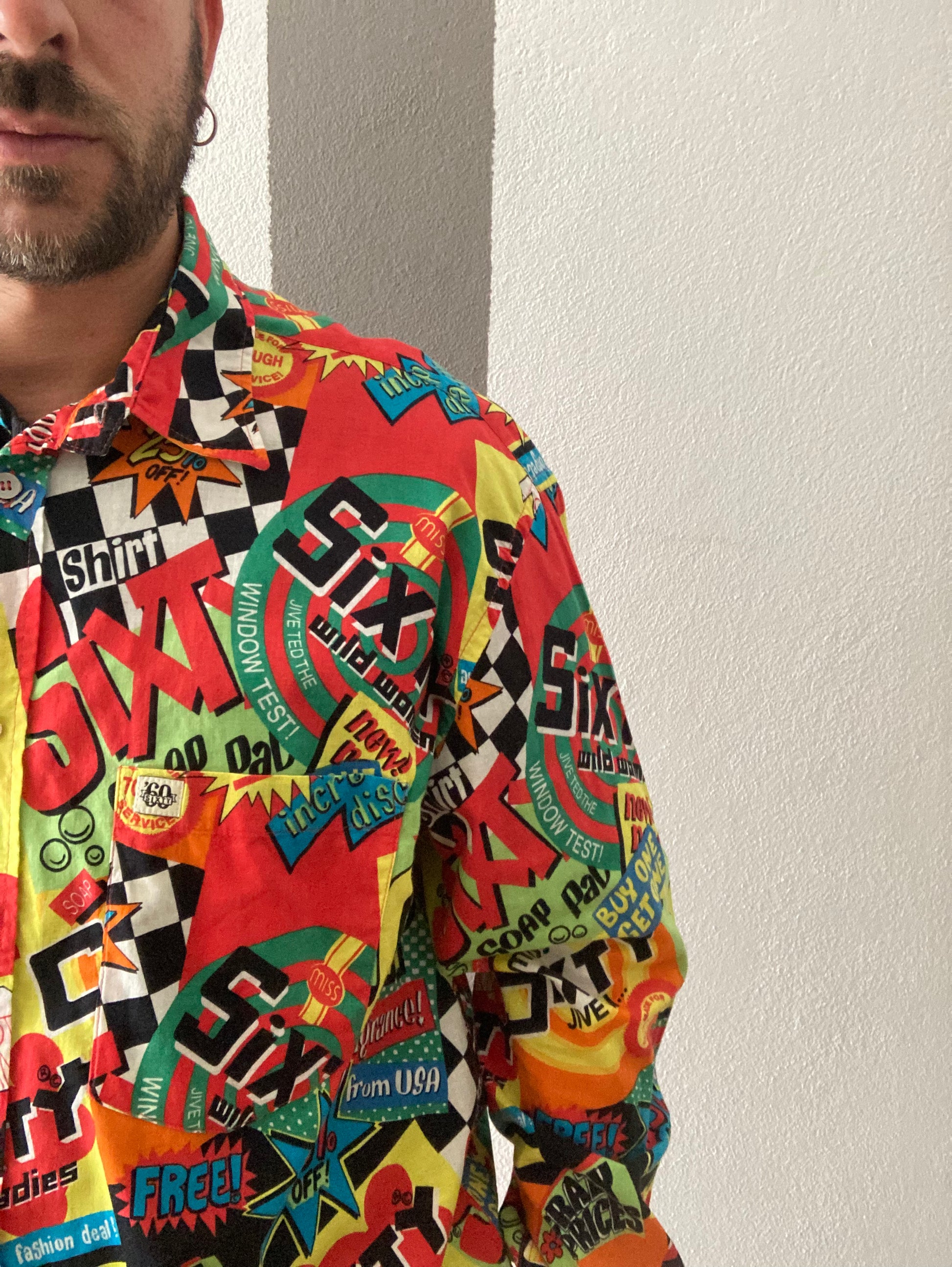 Camicia Sixty ‘90 in multicolor , pattern astratto dai toni vivaci , size L .