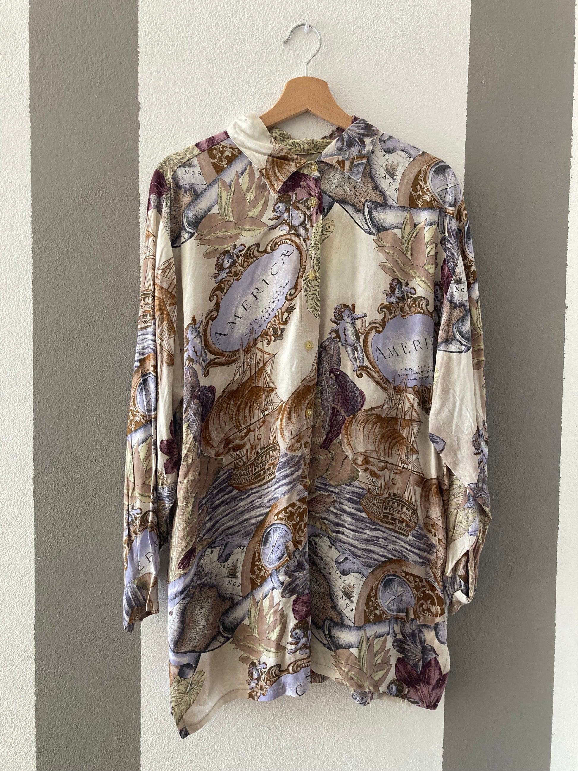 Camicia vintage a fantasia dai toni delicati , veste una L morbida . 100% viscosa