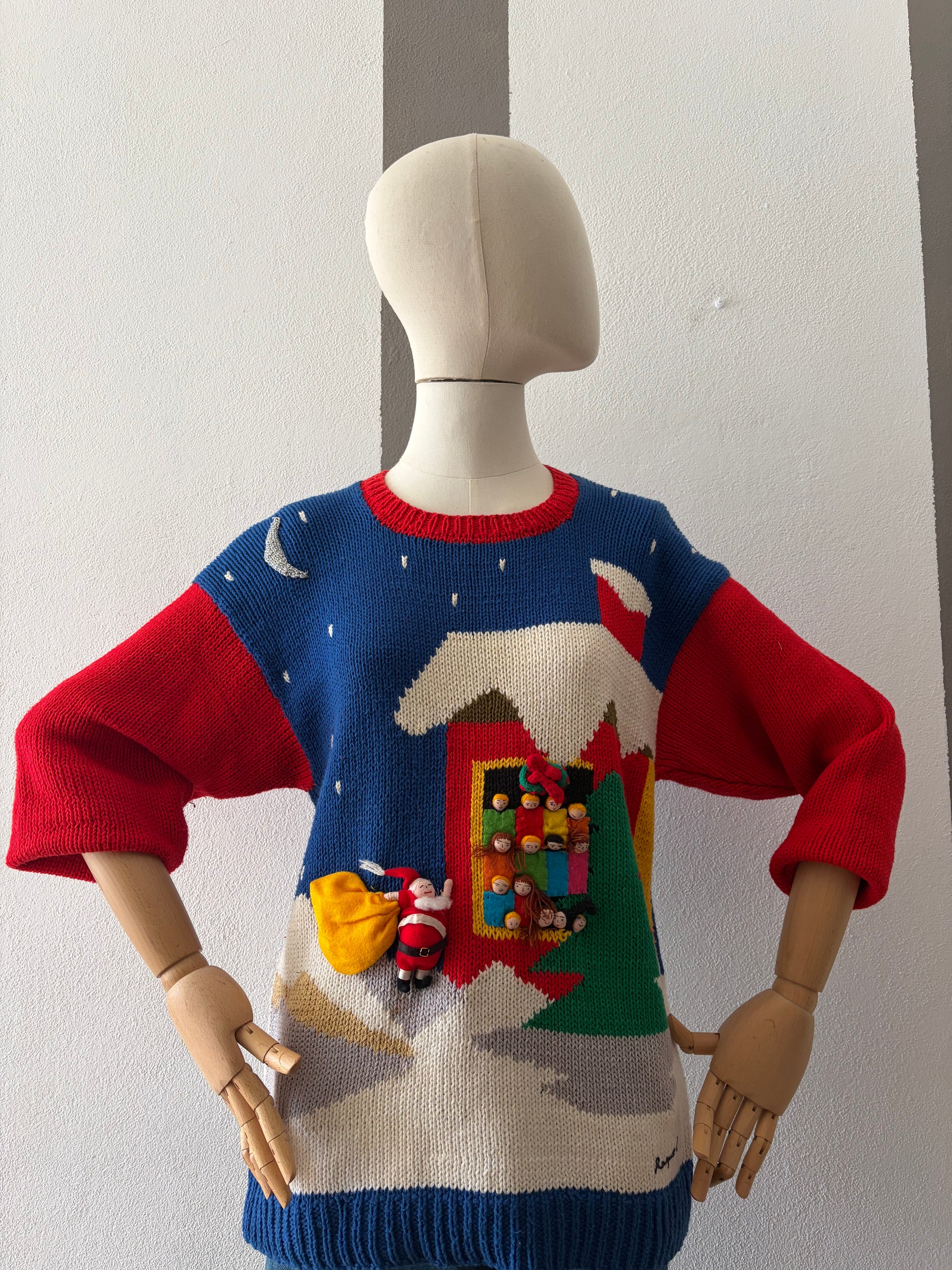 MAGLIONE VINTAGE RICAMATO TEMA NATALIZIO
