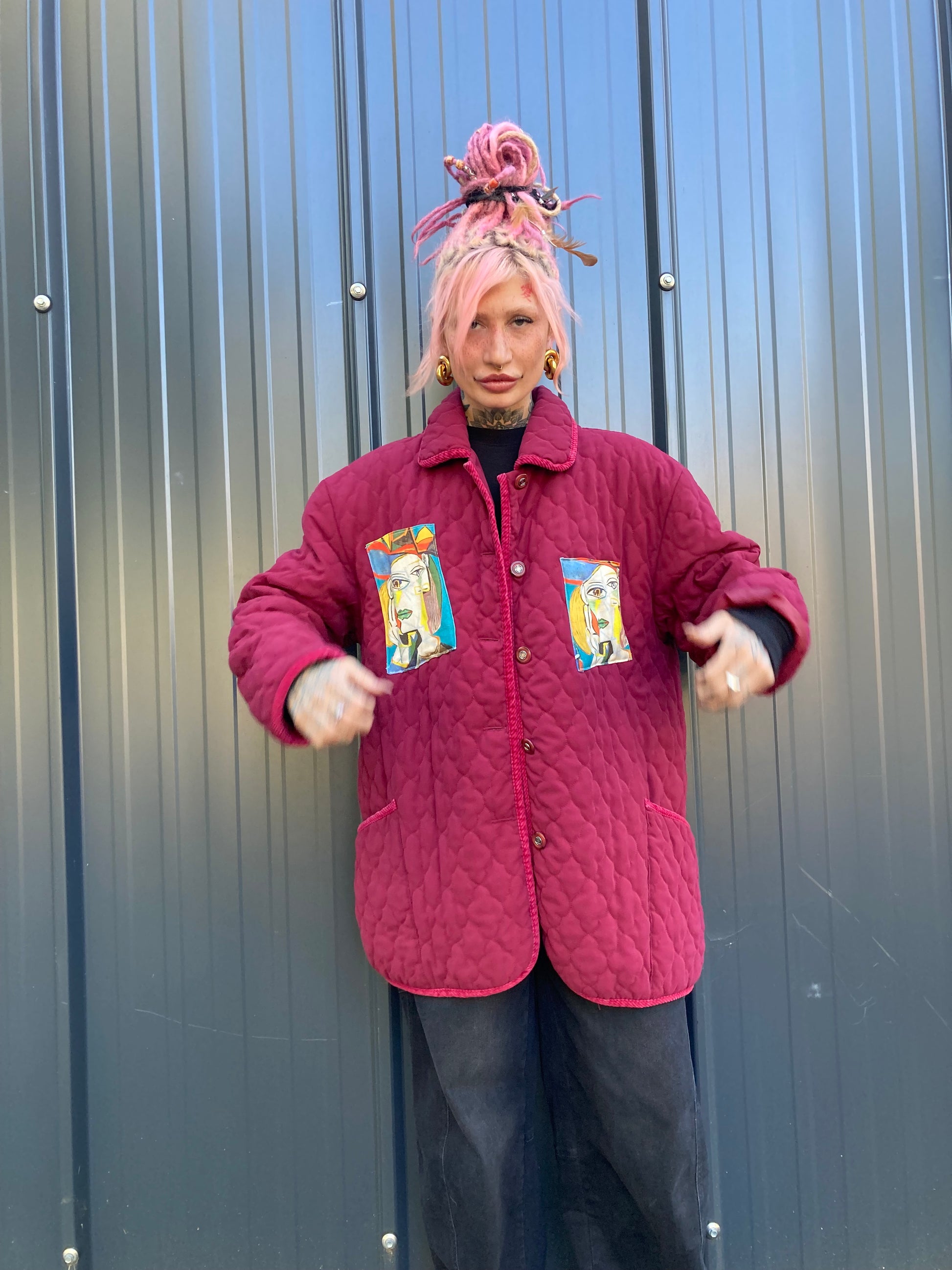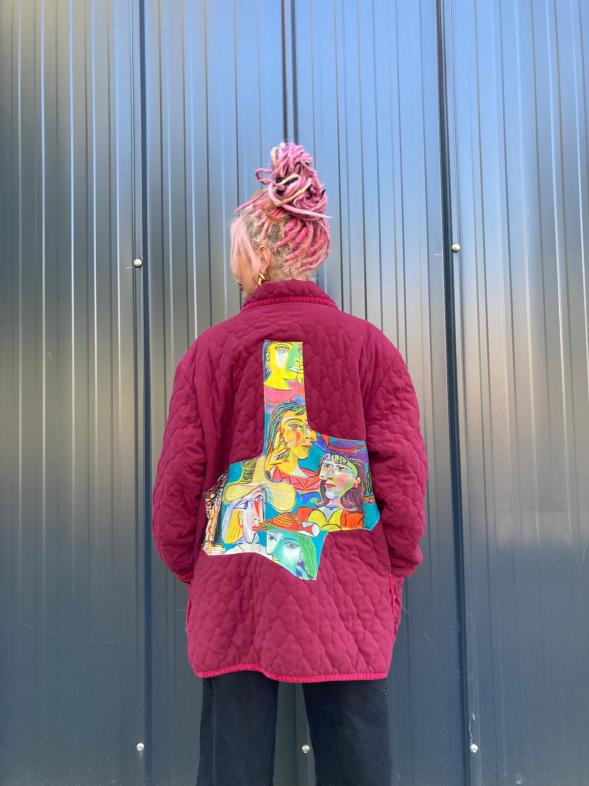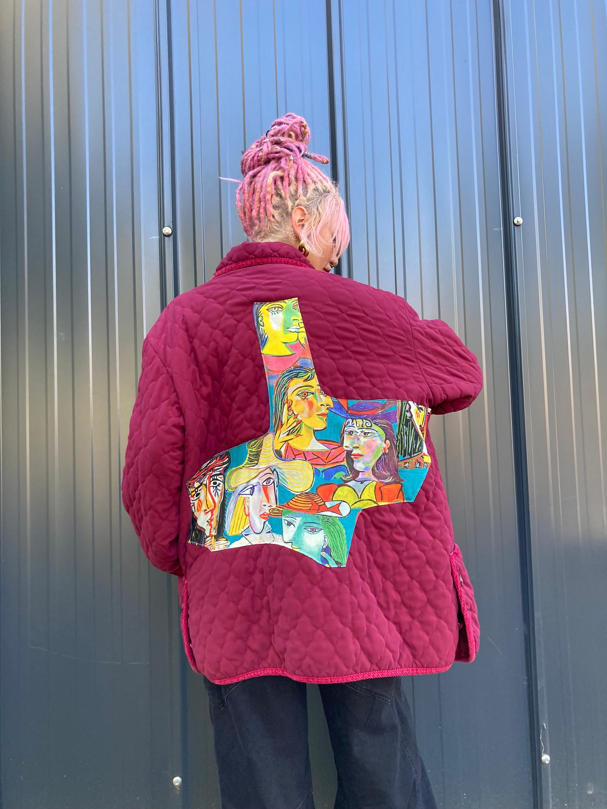 TRAPUNTINO COLLEZIONE MACEDONIA . PATCH TEMA PICASSO IN MULTICOLOR ,VESTE UNA L DONNA.