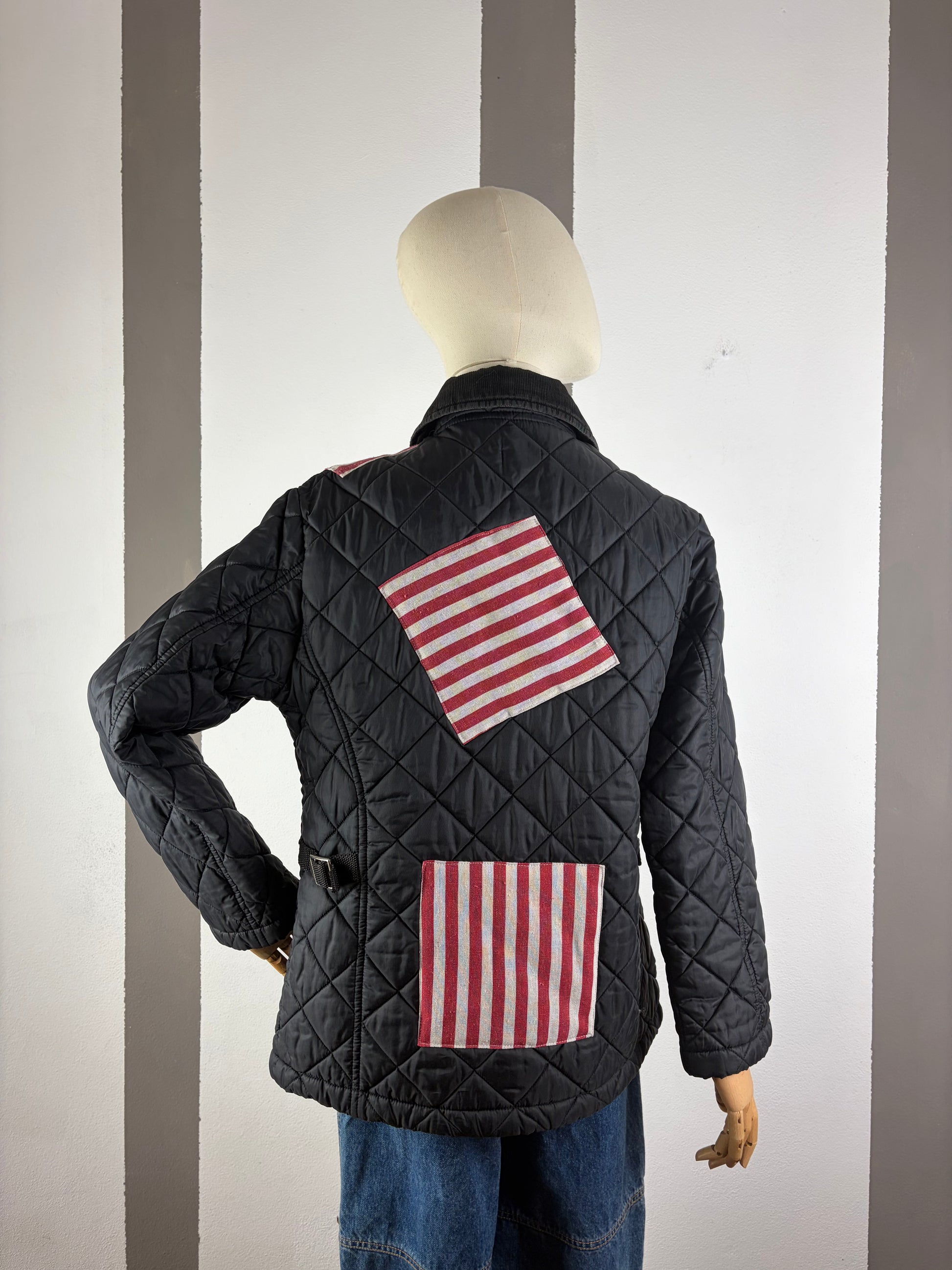 Trapuntino custom con patch a righe , veste una S morbida .