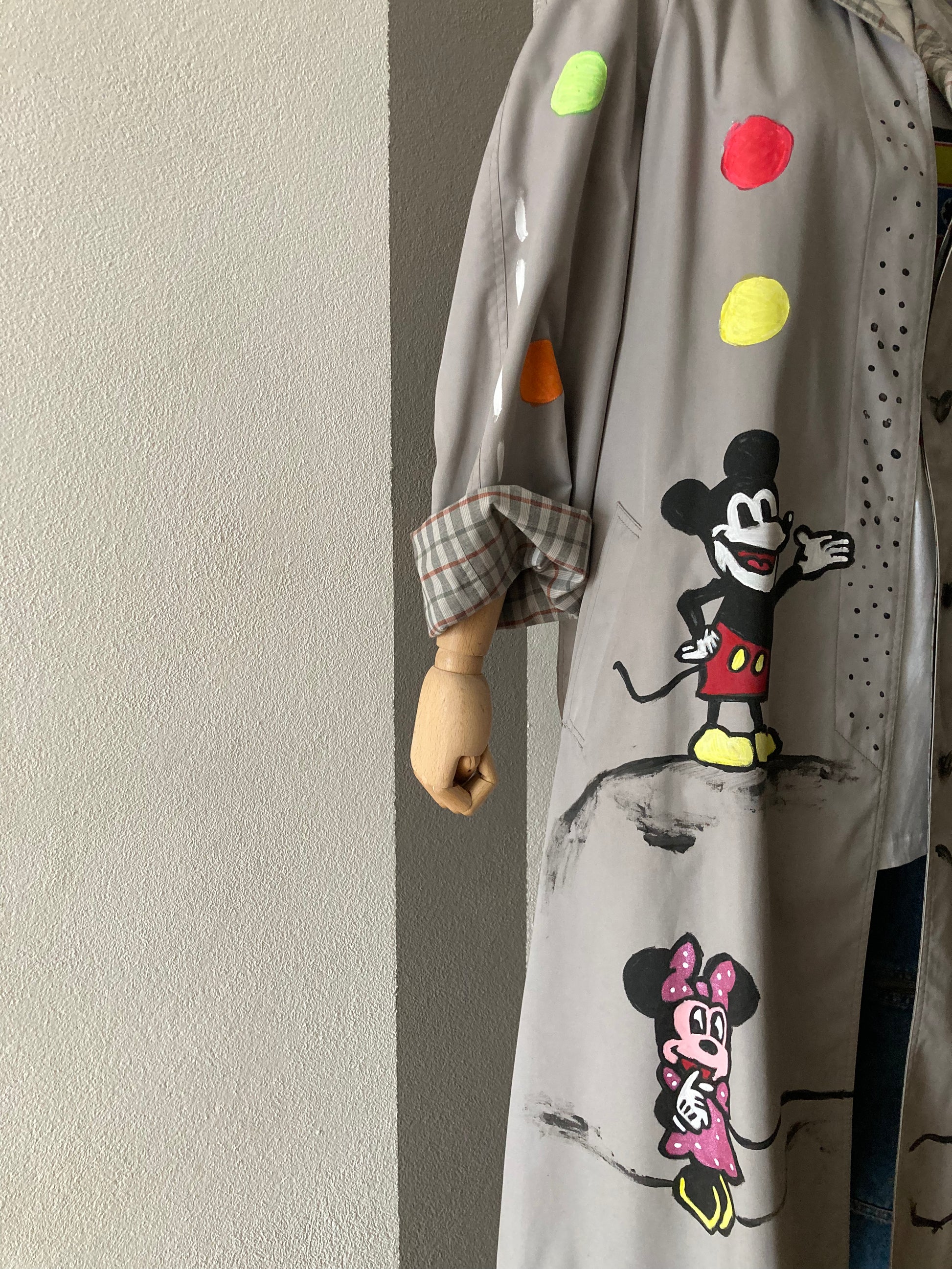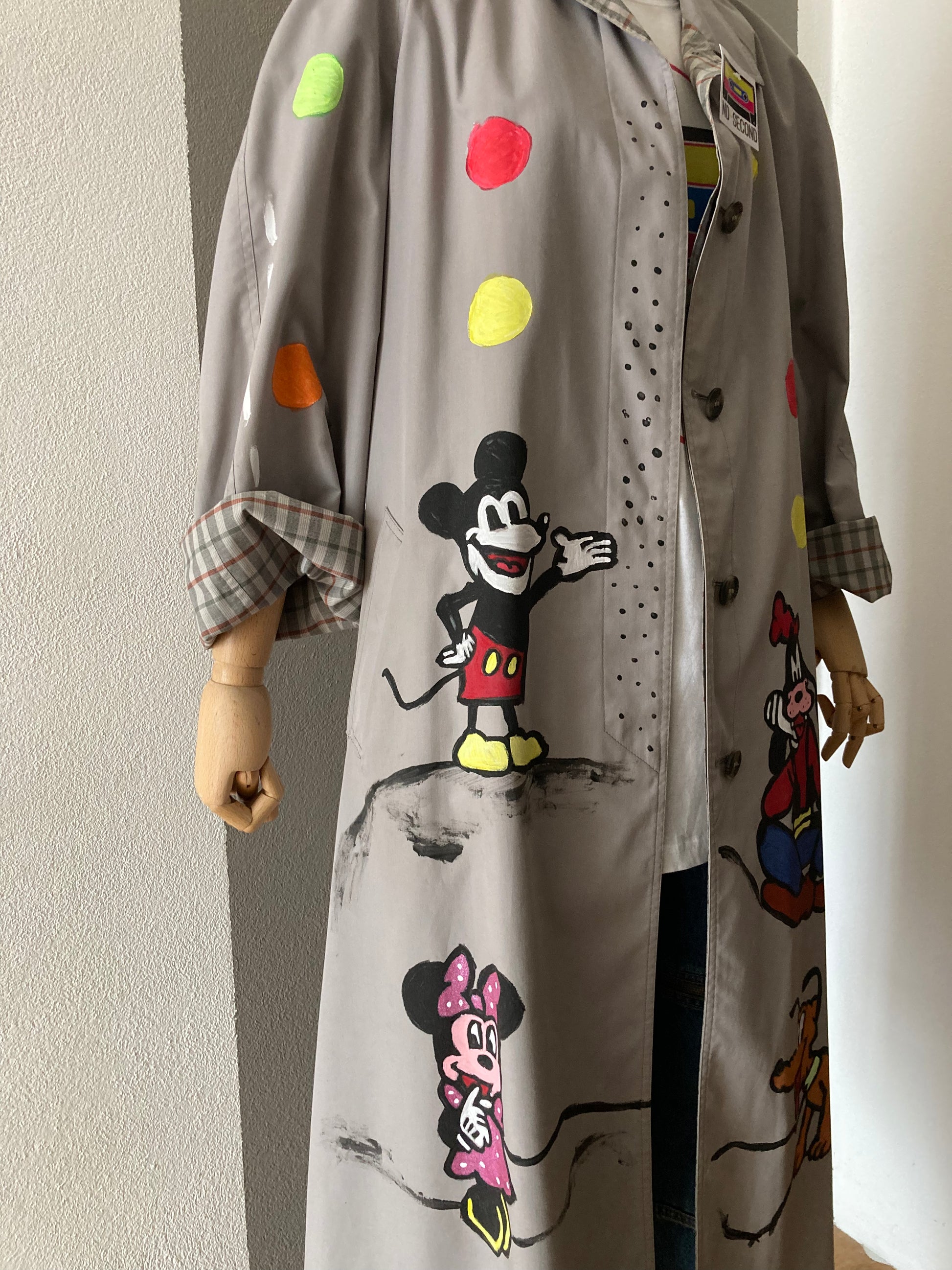 Trench custom con personaggi Walt Disney dipinti a mano , veste una M/L